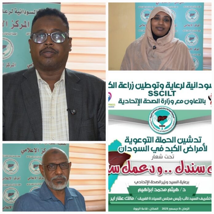 أعلنت الجمعية السودانية لرعاية وتوطين زراعة الكبد- استعدادها لانعقاد الورشة التوعوية لأمراض الكبد في السودان – تحت شعار ” كبدك سندك .. ودعمك سندة”، وذلك في التاسعة من صباح الثلاثاء المقبل 9 ديسمبر 2025م .. بقاعة الربوة ببورتسودان- برعاية وتشريف عضو مجلس السيادة الانتقالي الفريق مالك عقار إير وإشراف وزير الصحة الاتحادي د .هيثم محمد إبراهيم.